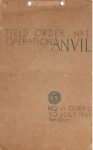TAPUSCRIT ronéoté avec PLANS, Field Order n° 1 Opération ANVIL, Q.G. VIe Corps, Naples 30 juillet 1944 ; 51 pages in-fol. ronéotées, 9 cartes in-plano et 12 cartes in-fol., en feuilles perforées sous couverture manuscrite, cachets Top Secret et Bigot-Anvil ; en anglais, avec annotations au crayon en français.