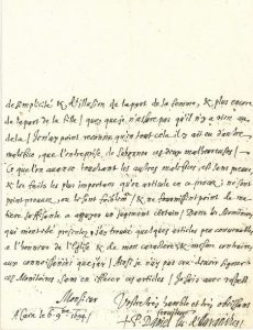 Sur une affaire de prêtre débauché, accusé de sortilège. Ses connaissances sur l’affaire des trois personnes accusées de sortilège, détenues dans les prisons, lui sont venues par plusieurs voies, « les unes par la confession, ou par des moyens relatifs a la confession, les autres par les examens que j’ay faits des accusez, par divers rapports qui m’ont esté faits, & par les entretiens que j’ay eus avec Mr de Glatigny, Lieutenant Criminel d’Avranches »… S’en tenant aux examens et confrontation qu’il a faits, « il m’a paru avec beaucoup de vraysemblance, quoyque sans une entiere certitude, que la premiere source de cette affaire, comme de la plus part des autres semblables, est la debauche, & que le Prestre pour abuser de ces deux creatures, a mis en usage des moyens qui ont causé tout ce scandale. Je suis persuadé que dans ces moyens, qui paroissent surnaturels, il y a beaucoup de charlatanerie de la part du Prestre, & beaucoup de simplicité & d’illusion de la part de la femme, & plus encore de la part de la fille, quoy que je n’assure pas qu’il n’y a rien au dela. Je n’ay point reconnu qu’en tout cela il y ait eu d’autre malefice, que l’entreprise de suborner ces deux malheureuses. Ce que l’on avance touchant les autres malefices, est sans preuve, & les faits les plus importans qu’on articule en ce procez ; ne sont point prouvez, ou le sont foiblement, & ne fournissent point de matiere suffisante a appuyer un jugement certain. Dans les monitoires qui m’ont esté presentez, j’ay trouvé quelques articles peu convenables a l’honneur de l’Eglise & de mon caractere ; & mesme contraires aux connoissances que j’ay. Ainsi je n’ay pas cru devoir signer ces monitoires, sans en effacer ces articles »…