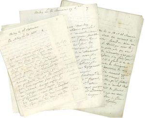 Très intéressante correspondance sur ses campagnes en Italie et en Égypte avec Bonaparte. [La sœur du comte de Guibert, Angélique de Guibert (1746-, avait épousé le comte de Pluvié ; leur fils Fortuné considéra la comtesse de Guibert comme sa mère adoptive, et l’appelle « ma bonne maman ».] Voyage de Paris à Lyon ; Venise et le lac de Garde ; les îles Borromées ; séjour à Milan. Rencontre avec JOSÉPHINE et BONAPARTE, qui lui parle avec admiration du comte de Guibert et le désigne comme secrétaire de légation à Gênes, auprès de FAIPOULT. Il semble alors se destiner à la carrière diplomatique (minute autographe d’une longue lettre à TALLEYRAND, évoquant le souvenir de Guibert). Séjour à Gênes, puis à Rome. Il se réjouit d’être appelé par Bonaparte pour participer à la campagne d’Égypte. En mai 1798, il est à Civitavecchia, prêt à embarquer pour l’Égypte avec MONGE et DESAIX. Relation de la traversée et de la prise de MALTE ; BONAPARTE le choisit alors comme aide-de-camp. La dernière lettre est écrite du Caire, « de retour de l’expédition de Syrie ». On joint 2 copies de lettres, dont une de la main de la comtesse de Guibert (et le brouillon d’une de ses réponses) ; une L.S. de TALLEYRAND concernant Fortuné PluviéGuibert, et 2 brouillons de lettres de Mme de Guibert à Talleyrand ; 6 lettres de Fortuné de Pluvié (le père), et divers documents (dont la copie par Fortuné Pluvié-Guibert de la notice de Mme de Guibert sur son mari)… Provenance : Archives du comte de GUIBERT (vente 14 octobre 1993, n° 76).