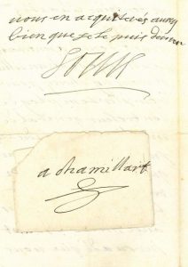 Louis XIV annonce à Chamillart sa nomination comme Contrôleur général des Finances. « Aiant donné a Pontchartrain la charge de chancellier je vous ay choisy pour remplir lemploy de controleur general de mes finances rendes vous insessament icy pour que je vous mette en estat den faire les fonctions je le fais avec plesir estant persuadé que vous vous en acquiterés aussy bien que je le puis desirer »…