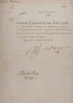 contrainctz faire venir et entretenir […] pour resister a noz subjectz rebelles »... Cependant des offices de conseillers de cour de plusieurs parlements, des greffes etc. restent à vendre, lesquels sont destinés « tant au payement de ce qui estoit deu de la solde de nos galleres & despence ordre de nre marine de Levant » et au remboursement au baron de La Garde, capitaine général des galères, « des fraiz & despences faictes a la conduite de lambassadeur du Turcq Agy Morat Bay venu vers nous » en 1567… HENRI IV. L.S., Monceaux 7 octobre 1598, à ses conseillers, les gens tenant sa cour de parlement à Rennes (contresignée par Louis Potier ; 1 p. in-fol., adresse). Au sujet de la remontrance des habitants de Saint-Malo sur la longueur du procès « que aucuns habitans de Laval poursuivent pardevant vous, a lencontre d’eulx, de quelques deniers pris aud. St Malo, en temps de guerre » ; la continuation de la levée d’impôts à Nantes, etc. MARIE DE MEDICIS. P.S., Angers 18 juillet 1625 (contresignée par Claude Bouthillier ; 1 p. oblong in-fol., sceau aux armes sous papier, mouill.). Lettres de sauvegarde pour la terre et seigneurie de la Fourryere avec les mestairies clouseries et moulins qui en dépendent en la paroisse de Villevesque appartenant au S. de La Jubaudière « l’un des Cappitaines de nostre ville d’Angers ». LOUIS XIII. L.S. (secrétaire), Saint-Germain-en-Laye 3 octobre 1624 (contresignée par Charles Le Beauclerc ; vélin oblong in-4). Ordre à Balthazar Phélypeaux, trésorier de l’Épargne, de payer au sieur de Marolles 3.000 livres tournois en considération de ses services. LOUIS XIV. P.S. (secrétaire ?), Poitiers 11 janvier 1652 (contresignée par Michel Le Tellier ; 2 pages in-fol., traces de sceau). « Sa Maté ayant advis que Monsieur le Cardal Mazarini, s’advance par deça, […] avec un corps d’armée considerable qu’il a levé et mis ensemble par ses soins, son credit & affection pour le service de Sa Maté, […] et qu’il marche incessamment vers la riviere de Loire pour s’advancer par deça et amener lad. armée a Sa Maté, pour la servir dans les occasions presentes ; Sa Maté ordonne & enjoinct tres expressement à tous gouverneur et ses lieutenantz generaux en ses provinces, gouverneurs particuliers de ses villes et places, estant sur la riviere de Loire, et autres ou il voudra passer, maires et eschevins d’icelles et à tous ses offers et subjects, de donner seur et libre passage et logement, tant à la personne dud. sr Cardal, qu’a toutes les trouppes, tant de cheval que de pied françoises et estrangeres, ensemble à l’artillerie, au bagage et esquipage estant a la suitte de l’armée, sans y apporter, ny souffrir qu’il y soit apporté aucun délay ny difficulté »… LOUIS XV. P.S. (secrétaire), Versailles 27 février 1756 (contresignée par Marc-Pierre de Voyer d’Argenson ; 1 p. in-fol.). Ordre à la compagnie d’ouvriers de Balmier de se rendre à Aix-en-Provence. LOUIS XVI. P.S., Paris 19 avril 1791 (contresignée par l’intendant de la liste civile Arnaud de Laporte ; 1 p. in-fol. en partie impr.). Ordre de payer à Dubois, « dentiste de la Reine », la somme de mille livres, « pour l’indemniser de ses absences de Paris »… MARIE-ANTOINETTE. P.S. avec un mot autographe « payez Marie Antoinette », Versailles 1er avril 1786 (avec la signature du secrétaire de