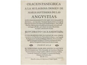 1713. (BAEZA-PARROQUIAL DE SAN PABLO). COBOS, GASPAR DE LOS: ORACIÓN PANEGÌRICA A LA MILAGROSA IMAGEN DE MARIA SANTÌSIMA DE LAS ANGUSTIAS [...] EN EL PLAUSIBLE NOVENARIO QUE SE CELEBRÒ EN LA IGLESIA PARROQUIAL DE SENOR SAN PABLO DE LA CIUDAD DE...