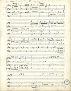 Ce manuscrit pour piano à 4 mains est écrit à l’encre noire sur papier à 24 lignes ; il est daté en fin à l’encre bleue :