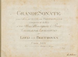 BEETHOVEN Ludwig van (1770-1827). — Cinq éditions anciennes de Sonates pour piano. — Grande Sonate pour le Clavecin, ou Fortepiano… Œuvre XXVI [Op.26] (Leipzig, Bureau de musique, [ca 1802]), 19 pages, cotage 118 [Hoboken 136].