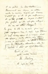 BERLIOZ Hector (1803-1869). — L.A.S. « H. Berlioz », 6 septembre 1854, à Amédée MÉREAUX ; 2 pages in-8.
