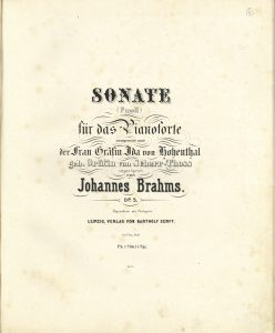 BRAHMS Johannes (1833-1897). — Sonate (Fmoll) für das Pianoforte... Op.5 ; Variationen für das Pianoforte über ein Thema von Robert Schumann… Op.9 (Leipzig, 1854) ; 2 partitions gravées, in-fol.