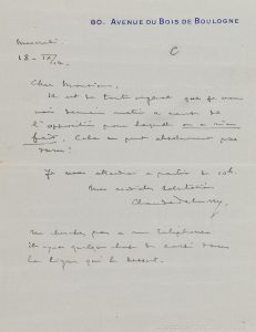 Sur ses soucis d’argent (les fautes témoignent de l’inquiétude de Debussy).