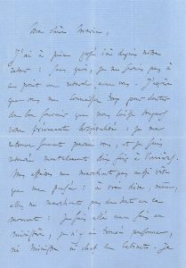 « Mes affaires ne marchent pas aussi vite que ma pensée : à vrai dire, même, elles ne marchent pas du tout en ce moment : je suis allé une fois au ministère, je n’y ai trouvé personne, ni ministre ni chef du cabinet. Je crois que la partie de chasse de Compiègne met tout ce monde en l’air. Cependant le tems marche et avec lui les inconvénients d’une situation qui s’aggrave pour moi de chaque jour de retard. – Nous avons eu ici encore une alerte sur la santé de Mr Dubufe père : nous sommes allés tous trois ce matin le voir à sa campagne, il est mieux en ce moment. – Et ma Berthe ? Travailles-tu ? Fais-tu tous les jours tes exercices ? Il ne faut pas interrompre ce qu’on veut qui profite. Nos rhumes commencent à passer : celui de mon Jean a complètement disparu »…