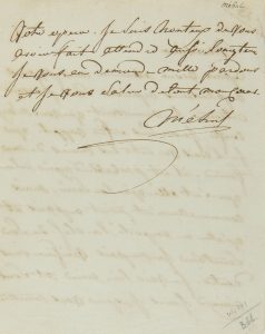 MÉHUL Étienne-Nicolas (1763-1817). — L.A.S. « Méhul », à un librettiste ou un compositeur ; 1 page et demie in-4.