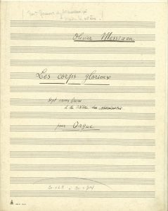 MESSIAEN Olivier (1908-1992). — MANUSCRIT MUSICAL autographe signé « Olivier Messiaen », Les Corps glorieux. Sept visions brèves de la vie des ressuscités pour orgue, [1939] ; titre et 34 pages in-fol.