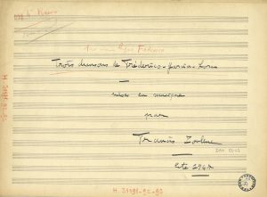 POULENC Francis (1899-1963). — MANUSCRIT MUSICAL autographe signé « Francis Poulenc », Trois Chansons de Federico Garcia Lorca, 1947 ; cahier à l’italienne : 1 feuillet de titre et 8 pages oblong in-fol. (24 x 33 cm). Manuscrit complet de ce...