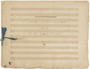 ROUSSEAU Jean-Jacques (1712-1778). — MANUSCRIT MUSICAL autographe, Armida… oh stelle ! non partirò. Scena del Sigr Antonio Sacchini, Milano 1772 ; cahier oblong in4 d’un feuillet de titre et 19 pages lié d’un ruban bleu (quelques infimes...
