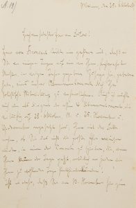 « Herr von Bronsart teilte mir gestern mit, daft er Sie vor einigen Tagen gebetenhabe, eines unsrer Abonnementconcerte durch Ihre solistische Mitwirkung zu verherrlichen. Auch ich mochte mich nun als Dirigent der ersten 4 Abonnentconcerte, […] Ihnen mit der Bitte nahen, ob Sie uns nicht die große Ehre erweisen würden, in einem der Concerte zu spielen, die [...] natürlich an jedem von Ihnen zu wühlenden Tage stattfinden lainnten ! Ist es wahr, daß Sie am 13. November hier zum Besten der Musikschule spielen ? Wenn Sie nun überhaupt mir die große Freude bereiten wollen, in einem meiner Concerte zu spielen, ware es Ihnen nicht am 11. November [...] P.s. Herzlichsten Dank auch meinerseits für die freundliche, liebenswürdige Aufnahme meines Freundes Rösch u. die Gewährung von dessen Bitte, Ihre Proben besuchen zu dürfen. – Die Nachricht von der Wiederherstellung unsres Freundes, Eugen Spitzweg, wird Sie wohl auch hocherfreut haben ! »