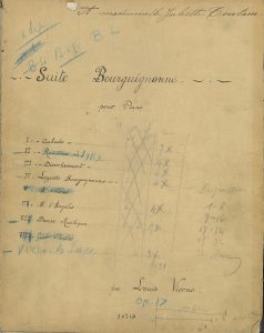 VIERNE Louis (1870-1937). — MANUSCRIT MUSICAL avec corrections et notes autographes, Suite bourguignonne pour piano (1899) ; 33 pages in-fol. sous chemise titrée.