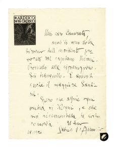 D'Annunzio Gabriele, Lettera autografa firmata inviata al Comandante del 43° Battaglione Bersaglieri (Mattuglie). Datata 18.1920