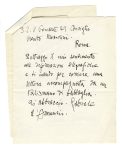 Manoscritto a inchiostro nero. 2 carte scritte al recto. 1 con intestazione 'Io ho quel che ho donato'. Fogli e busta spillati tra loro. Dimensioni: 270x195 mm.