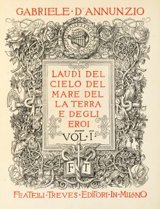D'Annunzio Gabriele, Laudi del cielo del mare della terra e degli eroi. Vol. I (-II). In Milano: Fratelli Treves, 1903-1904.