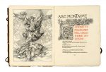 2 volumi in-4° (mm 240x175). Pagine [10], 314, [4]; [10], 437, [3]. Frontespizio illustrato inciso in legno a inchiostro rosso e nero. Capilettera e finalini xilografici. Splendide illustrazioni in nero nel testo. Esemplari in barbe, in ottime condizioni di conservazione. Legatura in cartonato, con illustrazioni e legacci ai piatti, e titoli al dorso. Gravi mancanze ai dorsi, con quello del secondo volume completamente assente, e ai margini dei piatti anteriore; sfilacciato il legaccio posteriore del secondo volume. (2)