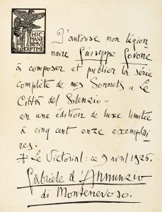 D'Annunzio Gabriele, Le città del silenzio. In Parigi: Giuseppe Govone editore, 1926.