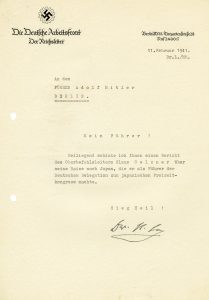 Raccolta di oltre 30 tra lettere, biglietti, fotografie con firme autografe, inviti di politici e militari del Terzo Reich. Anni '30-'40 del XX secolo.