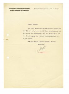 Jodel Alfred, Lettera dattiloscritta con firma autografa indirizzata a Julius Shaub. Datata 24 aprile 1944.