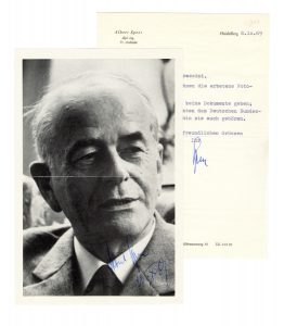Albert Speer, Lettera dattiloscritta con firma autografa. Datata 8 ottobre 1969, Heidelberg.