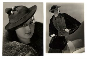Saad Georges, 2 fotografie di modelle: 1) abito Maggy Rouff; 2) cappello Suzanne Farnier. Non datate, ma anni '30.