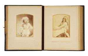 Raccolta di 32 albumine che ritraggono le attrici americane Mary Anderson e Marie Halton con vari costumi di scena. Fine XIX secolo.