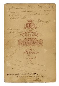 Roncagli Giovanni, Ritratto fotografico con dedica e firma autografa. La dedica è datata 17 agosto 1881.