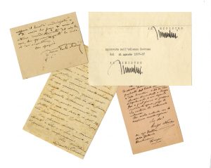 Raccolta di oltre 50 autografi di pittori, scultori, scrittori e altri. Fine XIX – inizio XX secolo.