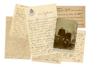 Raccolta di oltre 130 tra lettere, cartoline con dedica e firma autografa, biglietti da visita ecc. Datati fine XIX – inizio XX secolo.