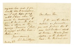 Byron George Gordon, Lettera autografa firmata inviata al conte Thurn (?). Non datata.