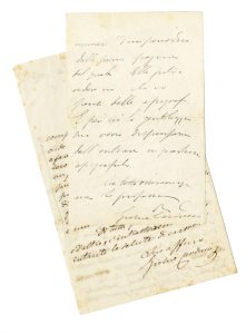 Carducci Giosuè, 2 lettere autografe firmate inviate all'editore Barbera e a Maria Luisa De Maria. Datate 1860 e 1882.