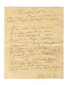 Carducci Giosuè, La mietitura del Turco. Componimento poetico, autografo firmato con correzioni dell'autore. Non datato.