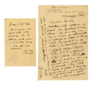 Croce Benedetto, 1 lettera e 1 cartolina autografe firmate. Datate 1908 e 1913.