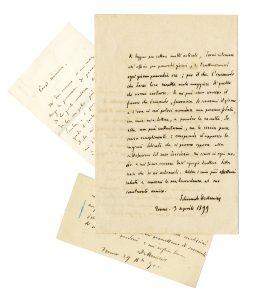 De Amicis Edmondo, 3 lettere e 1 cartolina autografe firmate. Datate fine XIX – inizio XX secolo.