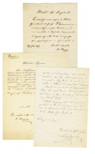 Manoscritto a inchiostro nero su carta rosa. 1 bifolio, scritte 2 pagine. Testo in italiano. Insieme alla lettera anche la risposta autografa del Prof. Gambara al Presidente dell'Ateneo per acconsentire al cambio di data della conferenza, copia non autografa della risposta positiva inviata da Gambara a Flammarion, biglietto di trasmissione al Presidente di detta copia unitamente al volantino stampato di presentazione dell'evento, il volantino originale 'Deux Soirées Atronomiques' datato 28 Fevrier 1873 con presentazione in italiano al verso. Dimensioni varie. (5)
