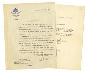 Montini Giovanni Battista - Paulus [papa VI], Raccolta di 7 documenti con annotazioni e firme autografe. Metà del XX secolo.