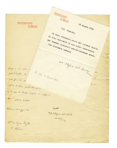 1 lettera e 1 biglietto sono autografi, mentre 1 lettera è dattiloscritta con firma autografa. Tutte su carta intestata 'Arcivescovado di Milano'. Dimensioni varie. (3)