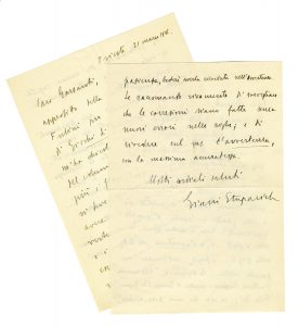 Stuparich Giano, 2 lettere autografe firmate inviate a Marino Parenti e all'editore Garzanti. Anni '40 del XX secolo.
