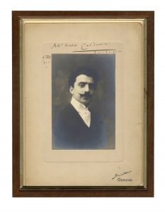 Trilussa [pseud. Carlo Alberto Salustri], 1 lettera autografa firmata e 1 fotografia con firma e dedica autografa. Fotografia datata 1902.