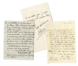Tra i nomi: Giovacchino Forzano, Antonio Bazzini, Gianandrea Gavazzeni, Gian Francesco Malipiero, Zubin Mehta, Giacomo Manzoni, Elvira de Hidalgo, Charles Gounod (2 lettere autografe), Jules Massenet, Ambroise Thomas, Olivier Messien (dedica e firma su cartolina), Ferdinand Paer (lettera autografa), Francesco Paolo Tosti (lettera autografa) e moltissimi altri. Tra le carte anche vari programmi di sala e locandine del teatro alla Scala (fine XIX- inizio XX secolo). (270)