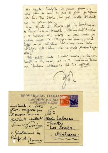 Raccolta di oltre 500 tra contratti, lettere, biglietti di cantanti, direttori, scenografi, strumentisti che collaborarono con il Teatro alla Scala negli anni '30 e '40 del XX secolo.