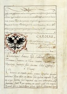 Diploma di nobiltà conferito dall'imperatore Carlo V a Joannem de Thadeis. Datato 9 luglio 1546 (ma in realtà copia del 1720)