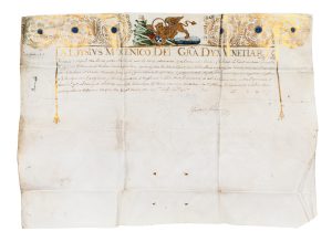 Pergamena. Privilegio in favore di una nave della Serenissima Repubblica di Venezia. Datato Venezia, 17 luglio 1707.