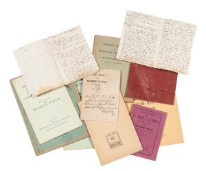 Manoscritti a inchiostro nero. Carte a stampa con intestazioni. Dimensioni varie. SI AGGIUNGONO: 14 volumetti a stampa. Fine XIX - inizio XX secolo. (33)