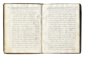 Manoscritto a inchiostro nero compilato da differenti mani. Legatura in pelle con segni del tempo. Dimensioni 230x170 mm.