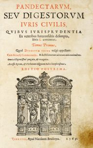 Pandectarum, seu digestorum Iuris Ciuilis, quibus iurisprudentia... Tomus primus (- tertium) [...] Editio Postrema. Venetiis : apud Nicolaum Beuilaqua, 1569.