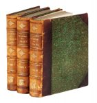 3 volumi in-4° (mm 250x180). Pagine [2] bianche, [12], 335, [3] + 1 antiporta e 12 tavole fuori testo, in bianco e nero e a colori, 2 a doppia pagina; [2] bianche, [8], 356, [4], [1] bianca + 1 antiporta e 23 tavole fuori testo, in bianco e nero e a colori; [6], 392, [4], [2] bianche + 1 antiporta e 20 tavole fuori testo, in bianco e nero e a colori, 1 a doppia pagina. Tutte le tavole sono protette da velina. Opera riccamente illustrata, con fioriture e macchioline sparse, ma complessivamente buone condizioni. Legatura in mezza pelle con punte e piatti in carta decorata verde; fregi e titoli in oro al dorso a 4 nervi. Numerose ed evidenti spellature agli angoli e al dorso. (3)