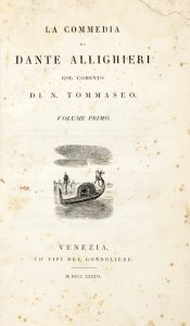 Alighieri Dante, La Commedia [...] col comento di N. Tommaseo. Volume primo (-terzo). Venezia: Co' tipi del Gondoliere, 1837.